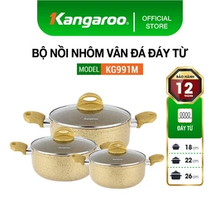 Bộ nồi nhôm vân đá đáy từ Kangaroo 18, 22, 26cm KG991M