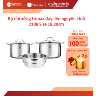 Bộ nồi xửng inox đáy liền nguyên khối trimax EL-2108 size 18,20cm