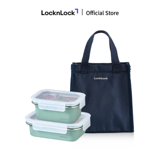 Bộ 2 hộp cơm LocknLock bằng thép không gỉ Coated STS Container nhiều dung tích và túi đựng màu xanh Navy
