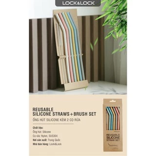 Bộ 6 ống hút silicone có thể tái sử dụng kèm 2 cọ rửa Lock&Lock, 250X78MM - TLL080