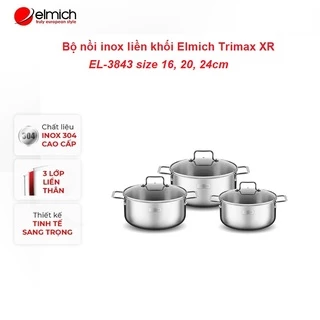 [LIFEMCMBP4 -12% đơn 250K] Bộ 3 nồi inox 304 cao cấp 3 đáy liền khối Elmich Trimax XR EL-3843 size 16, 20, 24cm